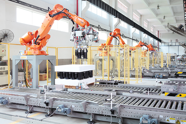 機器人夾具可以根據廠家的產能,場地的需要,采取整層抓取,或者單箱或多箱或一列抓取,靈活性大,適用的產能范圍也大。
